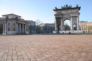 Arco de la Paz Los trabajos para la construcción del arco empezaron en 1806 gracias a Luigi Cagnola, al cual Napoleón pidió construir un arco celebrativo. Después de la derrota de Napoleón en Waterloo, el arco no se llevó a términe y en 1826 Francesco I de Austria ordinó que la construcción fuera terminada pero con algunas alternativas, porque él quiso dedicar el Arco a la Paz Europea alcanzada en 1815. Cuando Cagnola murió en 1833, el Arco fue llevado a termine por Francesco Peverelli y Francesco Londonio. Se inauguró el 10 de Septiembre 1838 por el Emperador Ferdinando I de Austria.